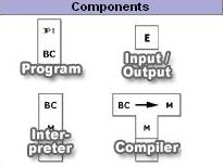 Das nächste mögliche Element ist der Interpreter. Interpreter dienen dazu, bestimmte Programme abzuarbeiten. Wenn Sie also einen Programmbaustein haben, der zum Beispiel mit Bytecode geschrieben ist, dieses aber auf M laufen muss, so brauchen Sie einen Interpreter, der auf M läuft und BC versteht. Genau das bewirkt in diesem Beispiel der Java Interpreter (Abb.8). Hier taucht ein Feature auf, welches Ihnen einiges an Zeit ersparen kann. Wie auch später bei den Compilern, gibt es für Interpreter Standardeinstellungen für geläufige Interpreter. So können Sie, nachdem Sie einen solchen Baustein auf die Arbeitsfläche gelegt haben, sofort auswählen, ob Sie einen Interpreter für Java, Python, Scheme oder Perl verwenden, oder doch einen eigenen definieren wollen. In dem Fall müssen Sie die Einstellungen wieder selbst vornehmen, Name des Interpreters, die Sprache in der er geschrieben ist und ggf. die Plattform, auf der er läuft und welche Sprache er interpretiert. Auch hier können Sie wieder den Pfad des Interpreters angeben, um ein lauffähiges Ergebnis zu erhalten.
